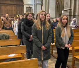 Nous avons vécu une très belle célébration, entourés d’au moins 80 scouts d’Europe et des paroissiens. La jeunesse était au rendez-vous dans la cathédrale ! Dans l’après-midi, Monseigneur a rappelé aux jeunes ce qu’est la foi en redonnant du sens au mot « croire » et au mot « Amour ». Nous avons vécu un moment très enrichissant.