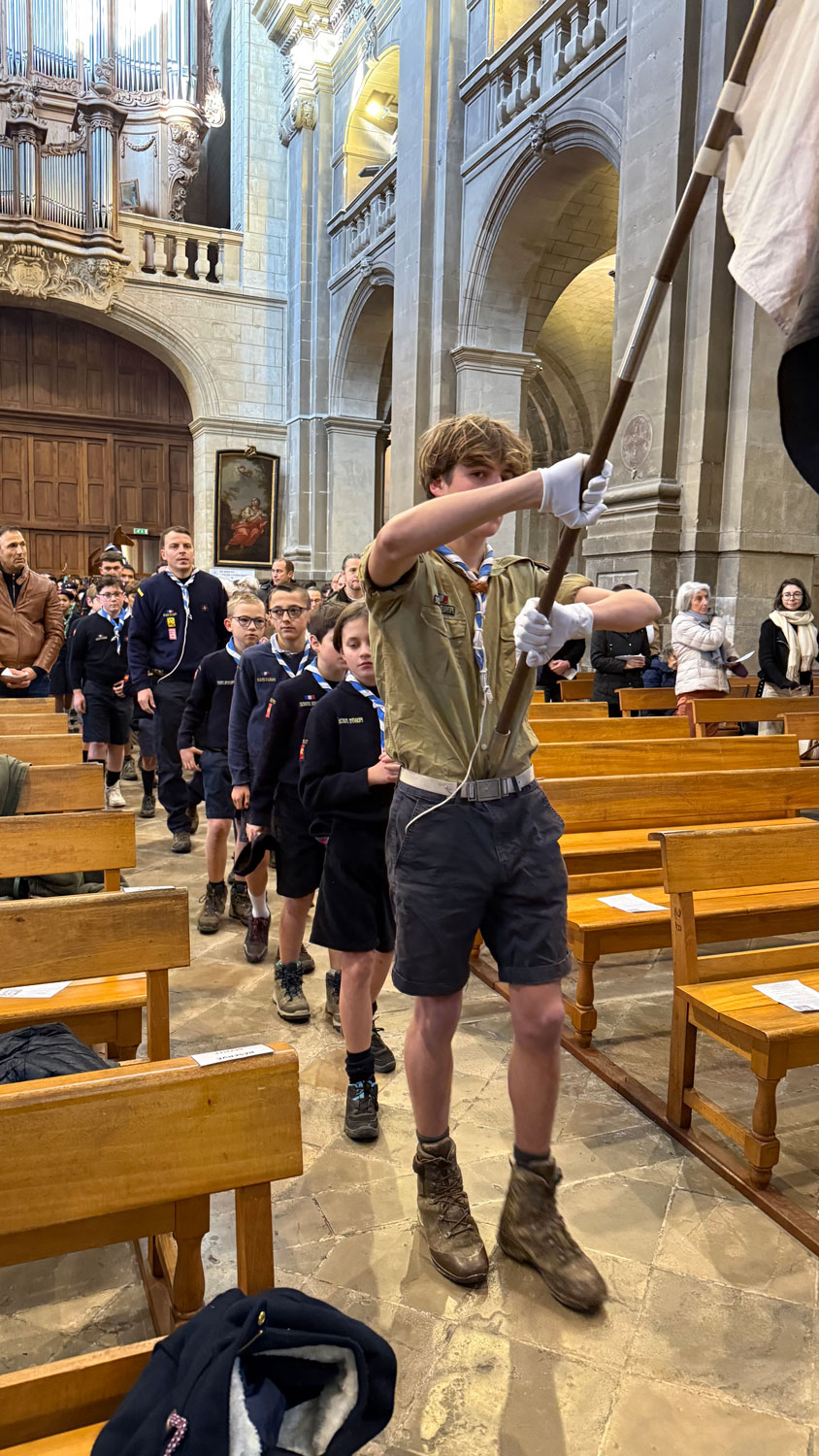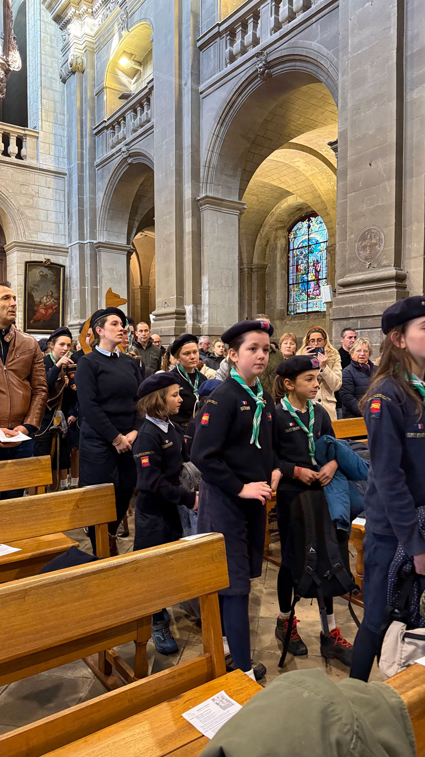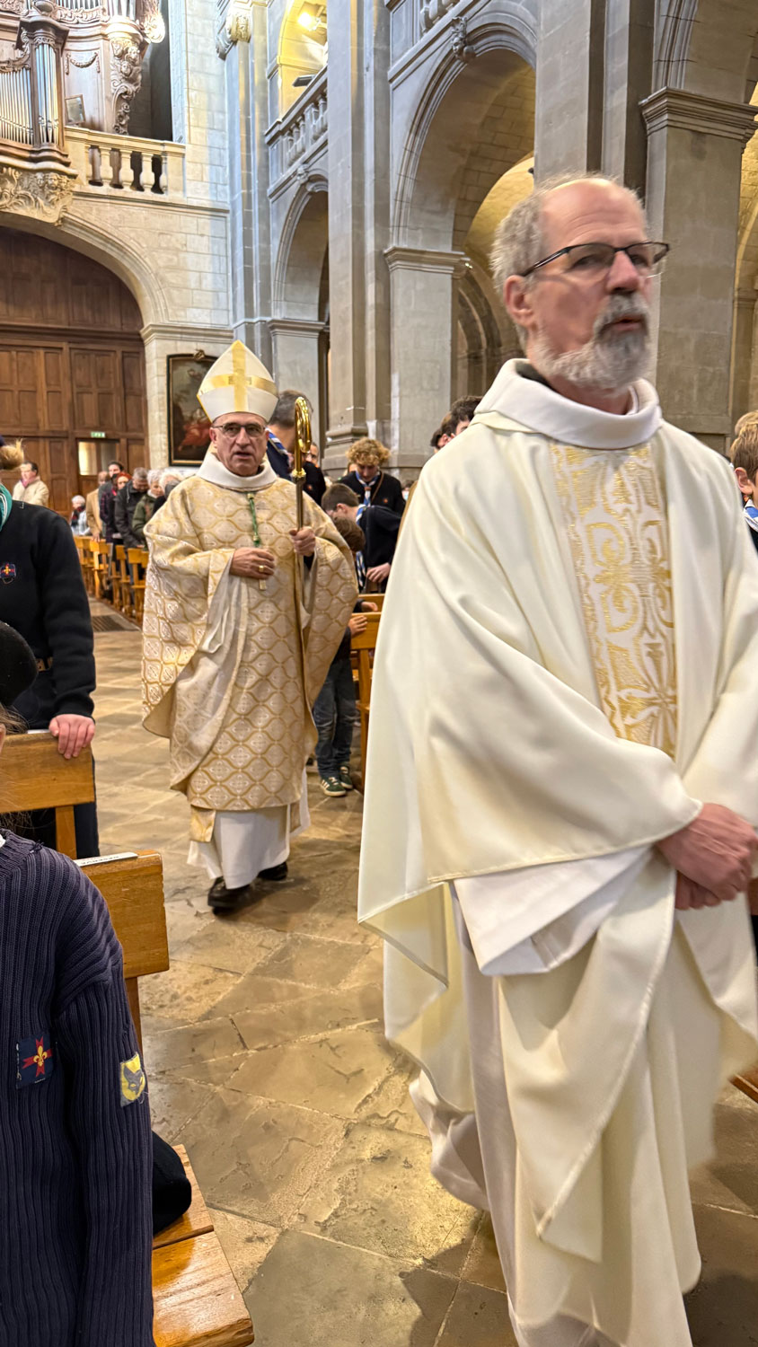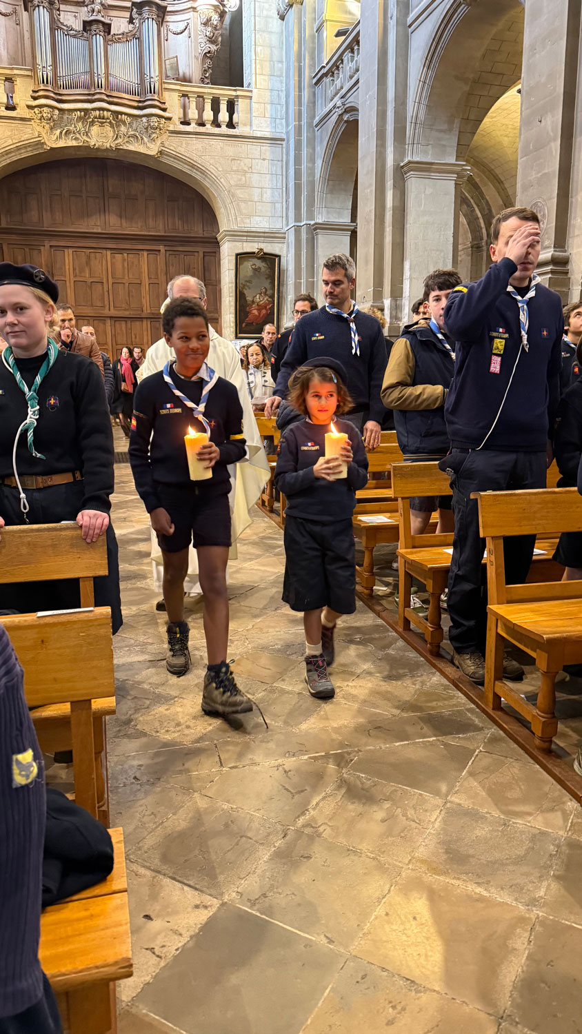 Nous avons vécu une très belle célébration, entourés d’au moins 80 scouts d’Europe et des paroissiens. La jeunesse était au rendez-vous dans la cathédrale ! Dans l’après-midi, Monseigneur a rappelé aux jeunes ce qu’est la foi en redonnant du sens au mot « croire » et au mot « Amour ». Nous avons vécu un moment très enrichissant.
